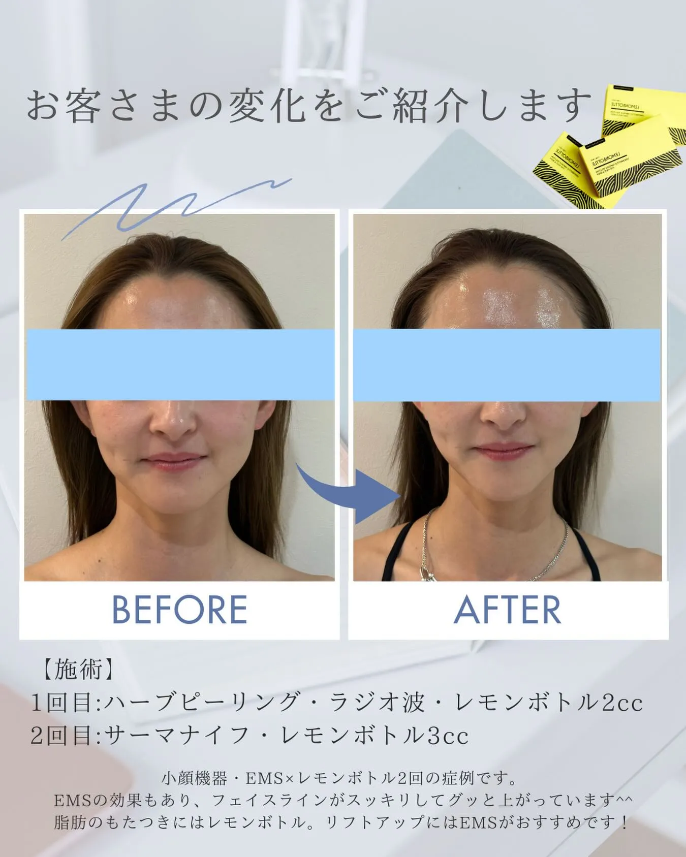レモンボトル+小顔機器+EMSでアプローチ。